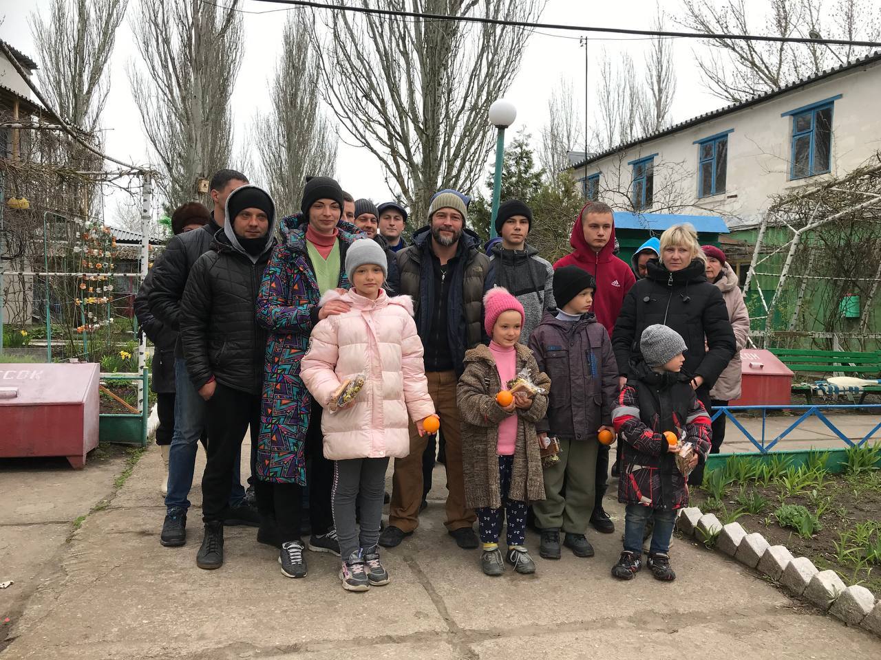 После боевых действий на территории Мариуполя остались без жилья много жителей, есть такие люди, которым некуда деваться, у них нет родных, нет детей. С нами связались такие люди, проживающие в одном из частных домов в районе Левого Берега. Эти граждане находятся в трудной жизненной ситуации, и их всех поселила в доме добрая женщина Елена Александровна–всего 20 взрослых человек. Мы дали название этому дому - «Дом милосердия». Низкий поклон Елене Александровне за ее доброту, щедрость и милосердие! С помощью фирмы " ФОРТЕ Холдинг" дом оснастили новыми батареями, теперь в нём тепло и уютно. Наша миссия привезла жителям этого дома мужскую и женскую домашнюю обувь, мужское и женское белье, женские футболки и шорты, постельное белье, полотенца, стиральный порошок, предметы домашнего быта, канцелярские товары, предметы личной гигиены, медикаменты, баки для воды - все в нужном количестве и определенных размеров. И, конечно же, мы передали вкусные подарки – несколько видов мясных изделий и пирогов,сахар и разные фрукты.